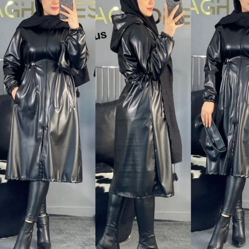 پالتو بلند چرم زنانه کد 18
