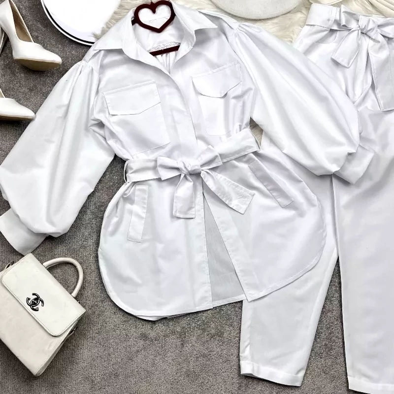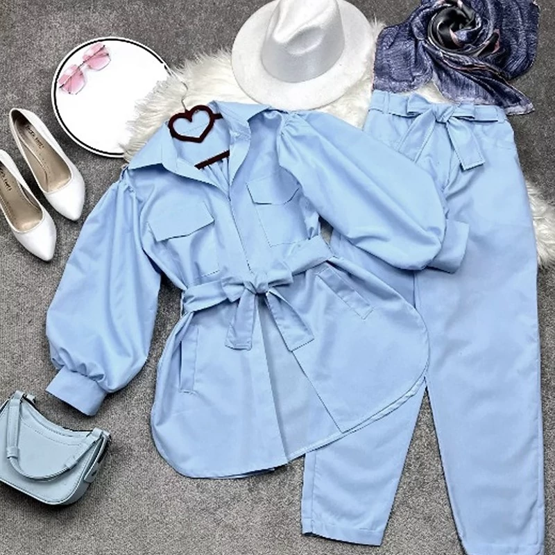 مانتو آستین پفی زنانه همراه شلوار کد 160